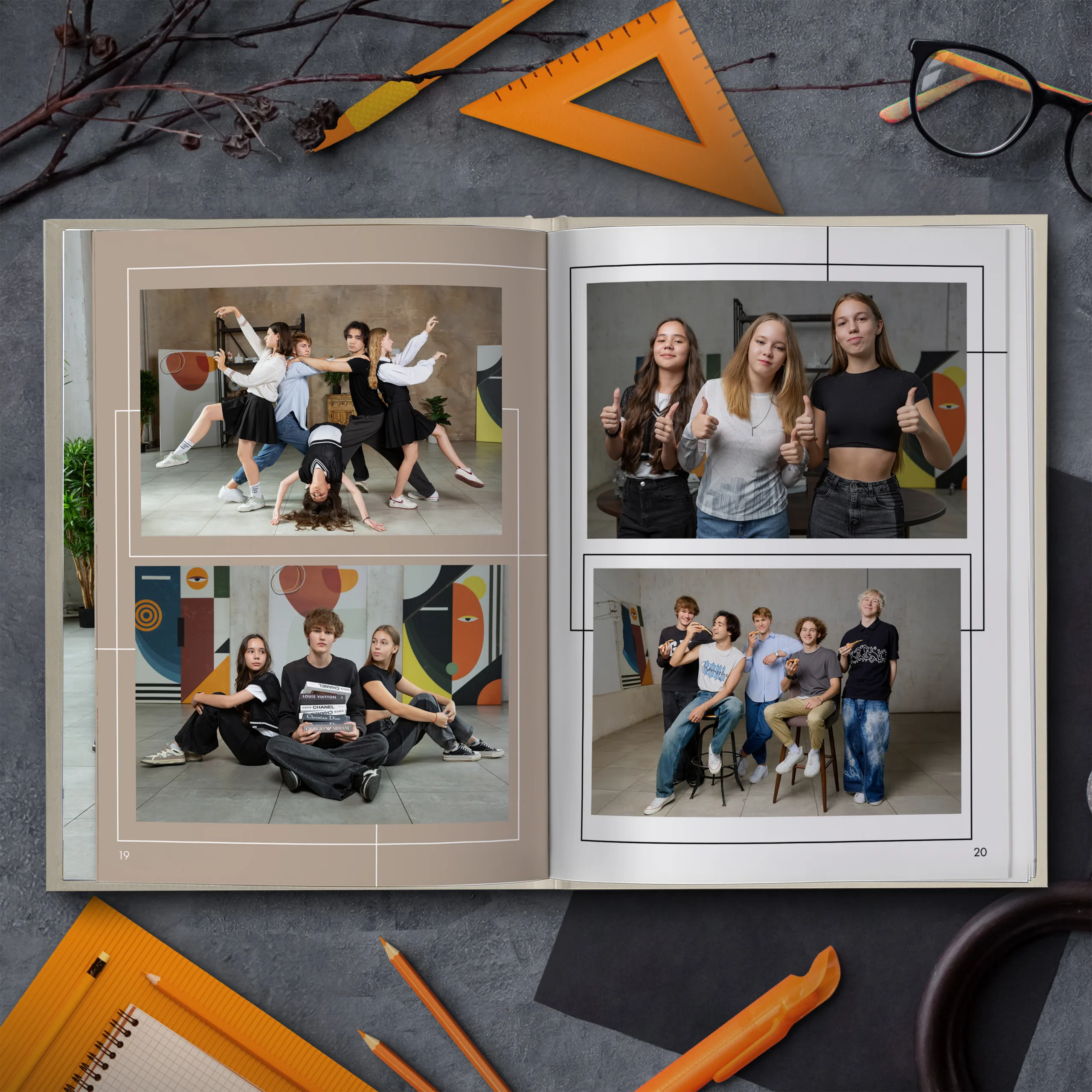 Последние 3 разворота — общие репортажные фотографии класса (20шт.)
