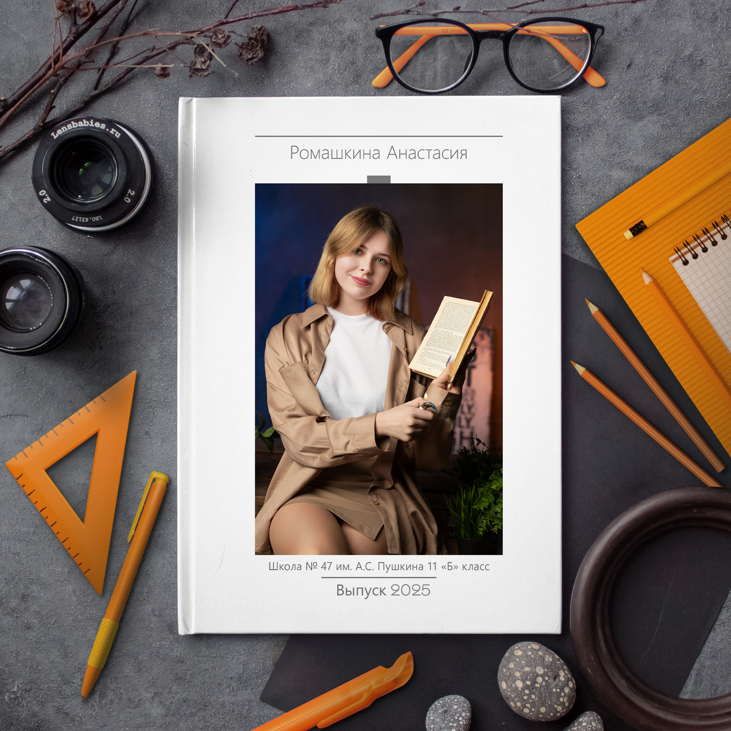 Вариант «Студийный» представлен с двумя студийными фотографиями выпускника в полный рост и три четверти на личном развороте.